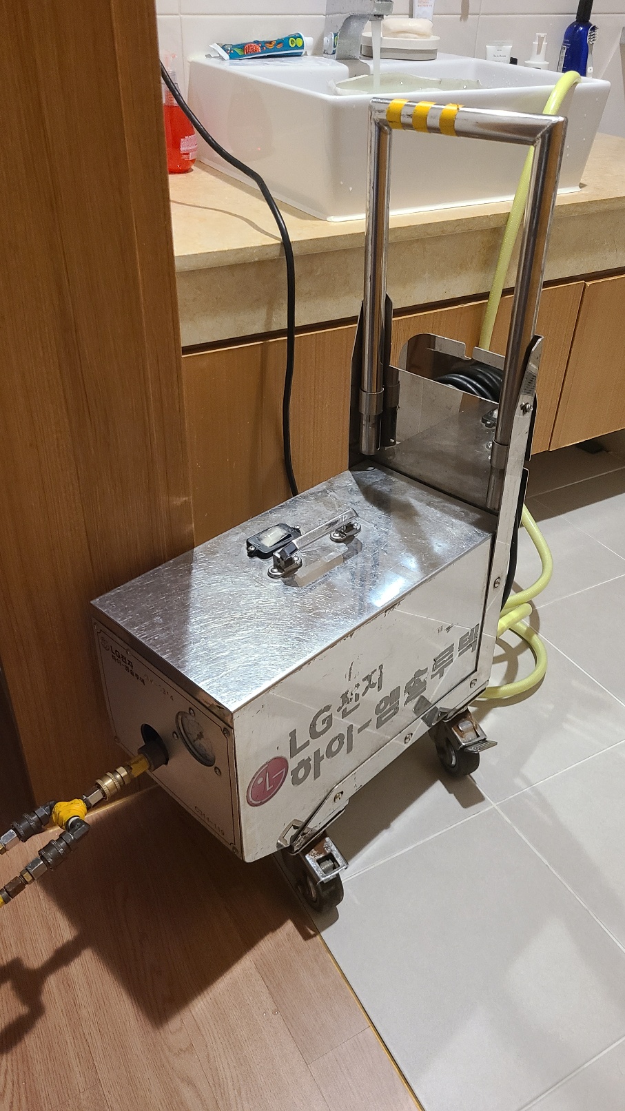 당일 아래와 같이 고압세척기 등 두명의 기사분들이 몇가지 장비를 가지고 오셔서 세척이 시작되었습니다.