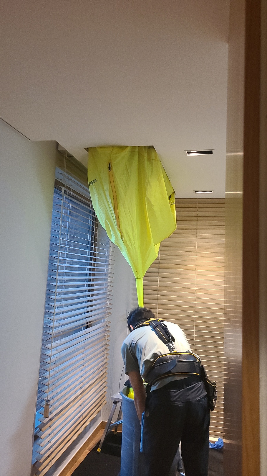 먼저 바닥에 부산물이 떨어지지 않도록 보양작업을 하시고 에어컨을 탈착하셨어요.